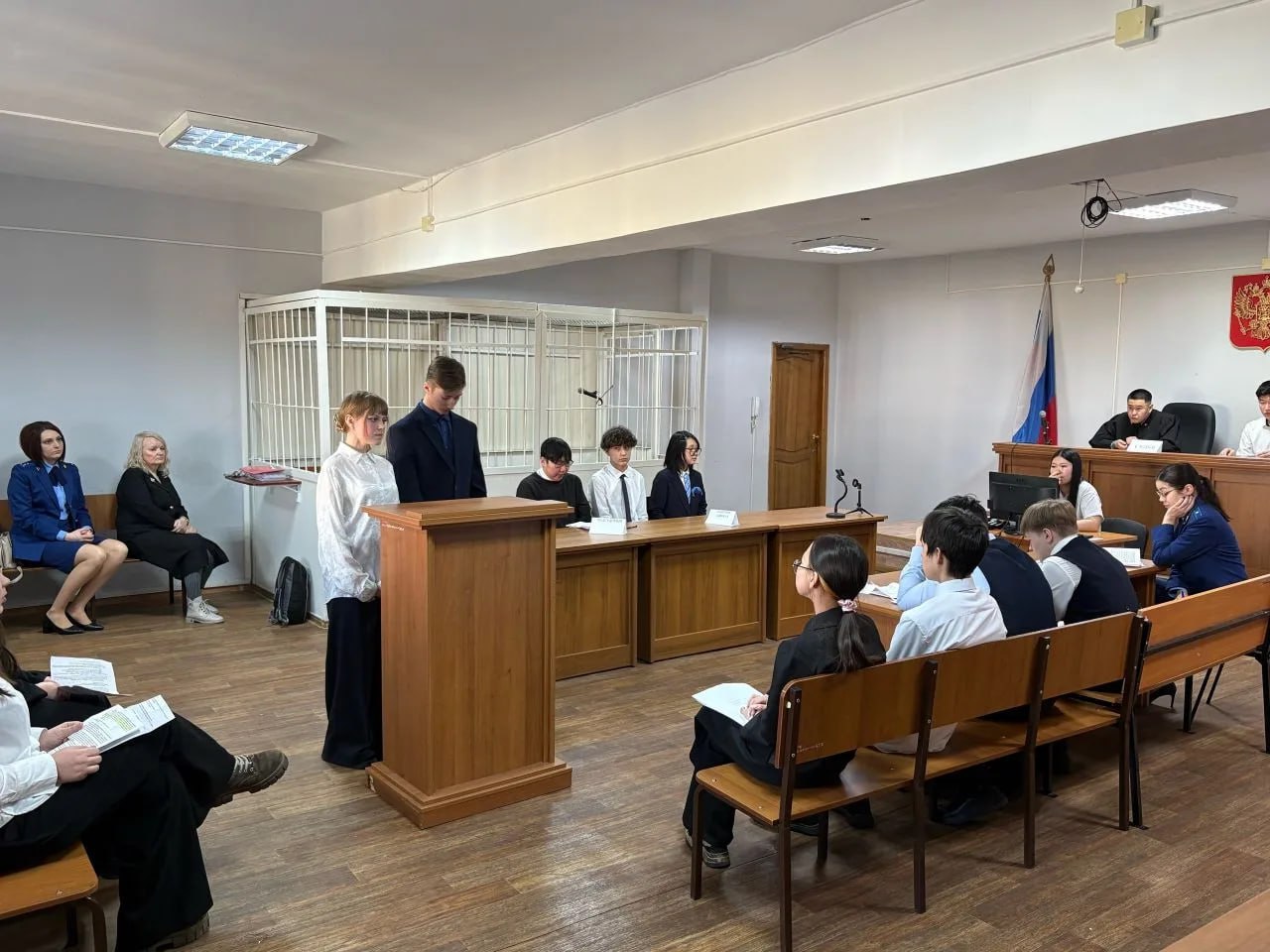 Ролевая игра по теме: «Уголовный процесс с участием присяжных заседателей» ![]() На базе Октябрьского районного суда г.Улан-Удэ 7 марта 2026 года была проведена встреча работников суда и прокуратуры Октябрьского района г.Улан-Удэ с учениками прокурорских классов 108 и 63 средних образовательных учебных заведений г.Улан-Удэ. Районный Октябрьский суд совместно с прокуратурой Октябрьского района г. Улан-Удэ провели для учеников прокурорских классов г. Улан-Удэ просветительское мероприятие в форме ролевой игры по теме «Уголовный процесс с участием присяжных заседателей». Со стороны суда игру курировали судья Балданов Тимур Цыденович и к.п.н., консультант-психолог суда Поплавская Александра Павловна. ![]() Его целью стало формирование у школьников старших классов законопослушного поведения и повышение интереса к деятельности органов суда и прокуратуры. В рамках игры смоделировано игровое судебное заседание по конкретному уголовному делу. Дети изучили основные функции суда, прокуратуры и защиты в уголовном процессе. Им рассказали об основополагающих принципах уголовного судопроизводства. Со стороны прокуратуры принимали участие помощники прокурора Савельева Татьяна Анатольевна и Сультимова Татьяна Леонидовна. Со стороны образовательных учреждений приняли участие учащиеся 9 класса, обучающиеся по направлению «прокурорский класс» общеобразовательной школы № 108, и заместитель директора по социальной работе и охране детства Шарапова Аюша Бабасановна и учащиеся 10 класса, обучающиеся по направлению «прокурорский класс» общеобразовательной школы № 63 и классный руководитель Ламожапова Дарима Аюшеевна, учитель иностранных языков. ![]() Впечатления об игре были самые положительные. Школьники получили удовлетворение от непосредственного участия в роли судей, прокуроров, адвокатов, обвиняемых, потерпевших, свидетелей, а также присяжных заседателей и др. Наиболее активным участникам вручены призы. А.П. Поплавская, пресс-секретарь Октябрьского районного суда г. Улан-Удэ |